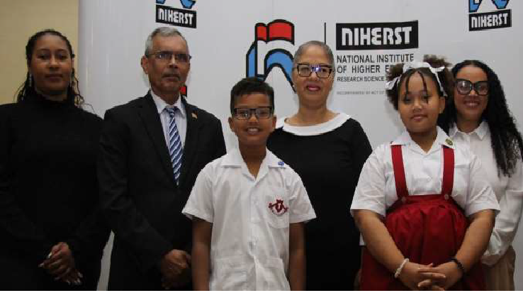 Back Row (L-R): Ryane Rollock (Senior Specialist –NIHERST), Wilson Henderson Jr. (Deputy Permanent Secretary – Ministry of Education), Julie David (President Ag. – NIHERST), Lovaan Superville