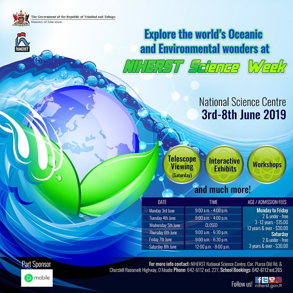 The National Institute of Higher Education, Research, Science and Technology (NIHERST) will host a Science Week centred on the celebrations of World Environment and Oceans Days.